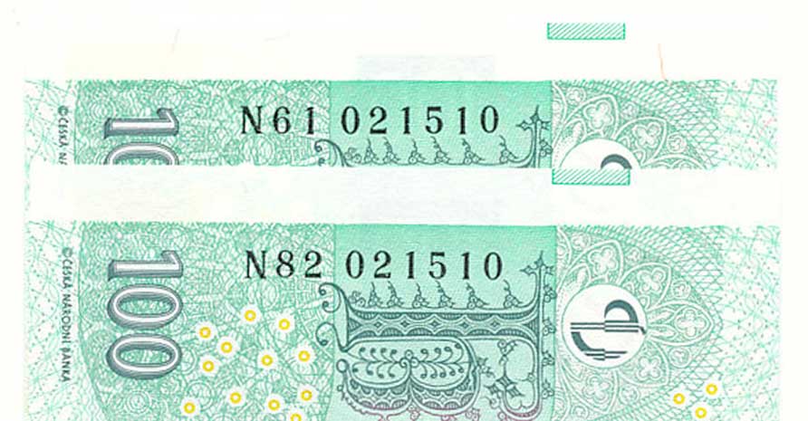 bankovka 100 - 100 let československé měny 10.4. - 16.10.2019, 2ks |