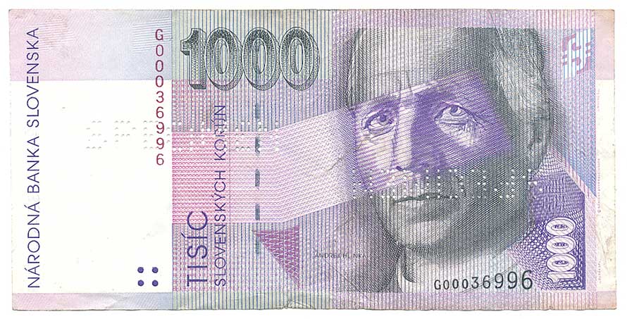 | 2113. | 1000 Sk 1993 s.G, 2x protilehle SPECIMEN, bankovní vzor,
