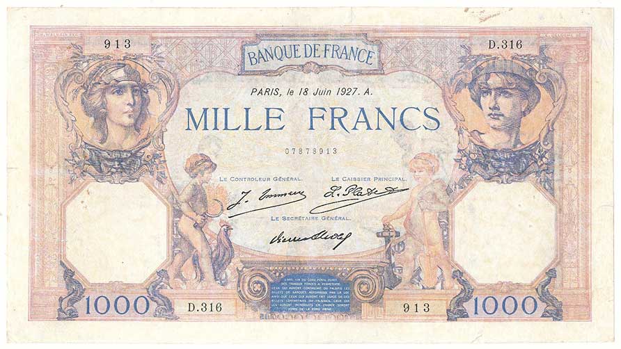 | 2122. | 1000 Francs 18.6.1927, s.D316, vlevo dírky | 2-3 | 200,- | 200,- |