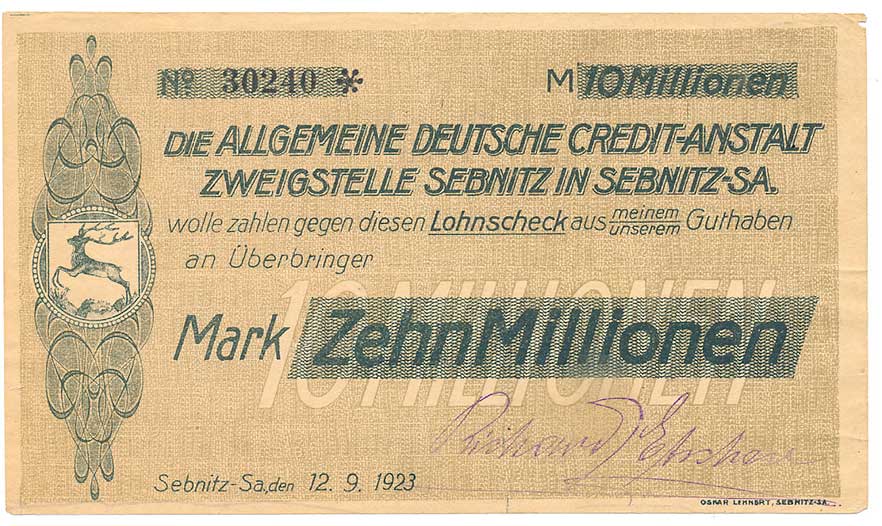 | 2130. | 10 000 000 Mark 12.9. 1923, Sebnitz | 3 | 100,- | 100,- |