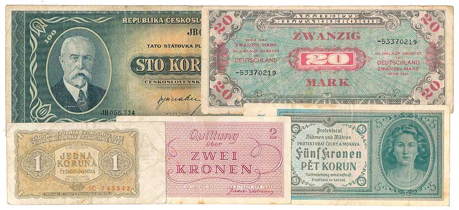 | 2124. | 5 Reichsmark 1.8.1942, s.T (7 čísel), s.C (8 čísel), 2ks | 1-2 | 100,- | 100,- |