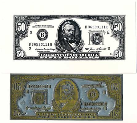 | 2175. | Tisková deska (štoček), pro tisk bankovky 50 Dollars 1985, Grand,