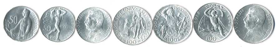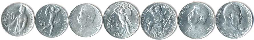 404. 50 a 100 Kčs 1947-1951,SNP,květen,Stalin,ČSR,horníci,Stalin,Gottwald, 7ks 0/0 2000,- --.-