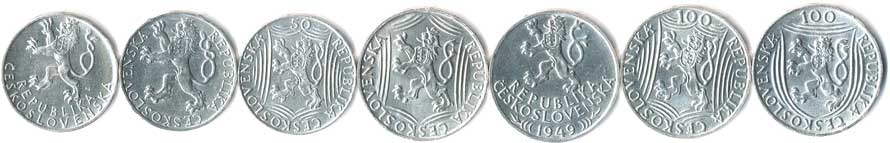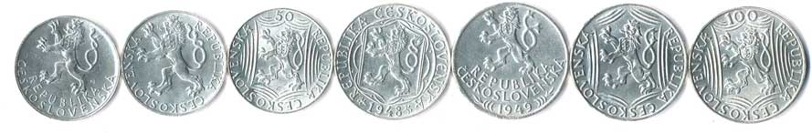401. 20 h.1948,50,51, 50 h.1951,52,47,48,50, 1 Kčs1946,50,52, 2 Kčs1947,48, 13ks 0/0 220,- --.-