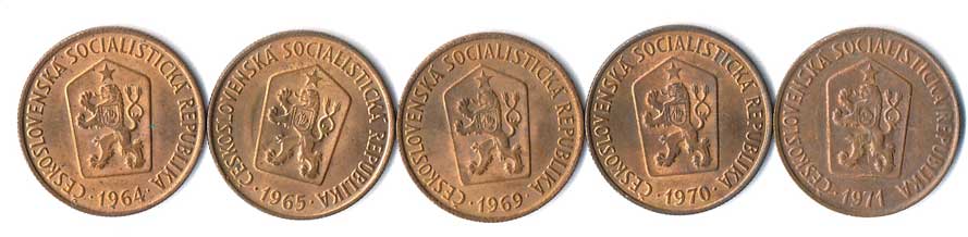 410. 50 haléř 1964,65,69,70,71, patina, 5ks 0/0 170,- --.-