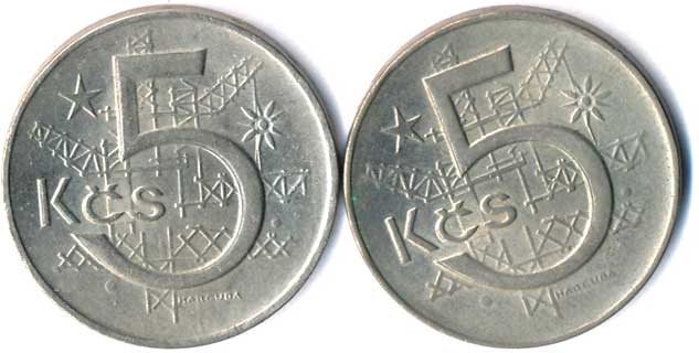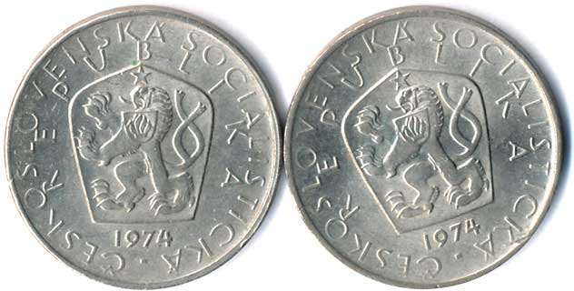 417. 5 Kčs 1974, varianta c,b, uzavřená 4, vyšší a nižší, 2ks 0-1 250,- --.-