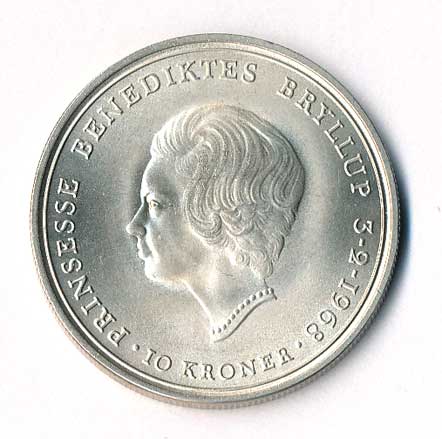 810. 10 Kroner 1967, svatba princezny Margrethy 0/0 500,- --.-