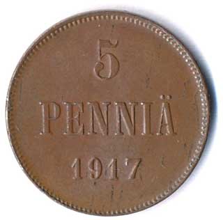 816. 5 Penniä 1917, orel bez koruny 1/1 180,- --.-