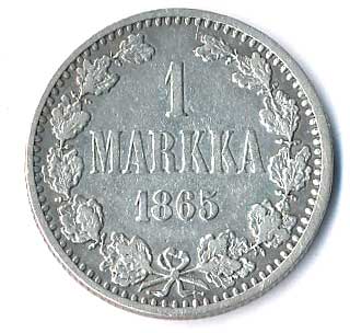 821. 1 Markka 1865, Chaurova značka 1-1- 480,- --.-