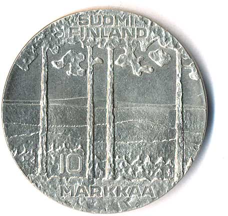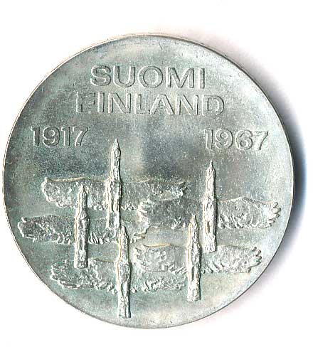 823. 10 Markkaa 1967, 50.výročí nezávislosti, Ag 0/0 620,- --.-