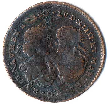 poprsí novomanželů, opis / zářící slunce nad krajinu, opis, Cu27
