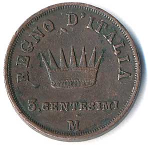 840. 3 Centesimi 1813 M, ďubky 1-1- 220,- --.-