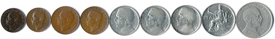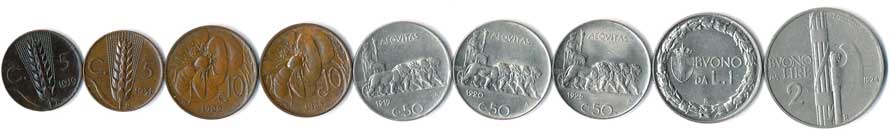 841. 5,5,10,10,50,50 Centesimi, 1919,31,22,23,19,20,25, 1 a 2 Lire, 1922,24, 9ks 0-1 180,- --.-