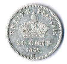 842. 20 Centesimi 1867 BB 1/1 260,- --.-