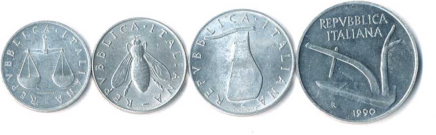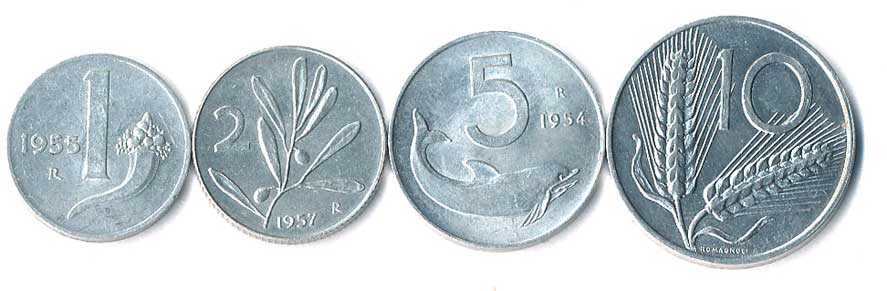 844. 1, 2, 5 a 5 Lire 1955,1957,1954,1990, 4ks 0/0 80,- 80,-