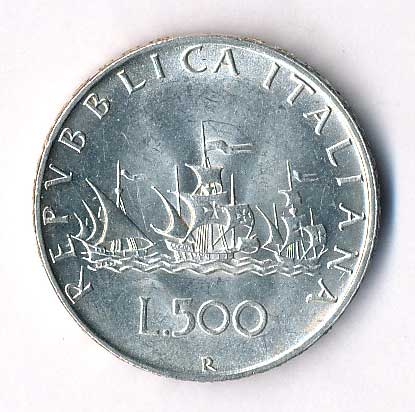 850. 500 Lire 1966, lodě Nina, Pinta a Santa Maria 0/0 280,- --.-