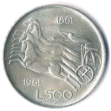 851. 500 Lire 1961, 100.výročí sjednocení Itálie 0/0 280,- --.-