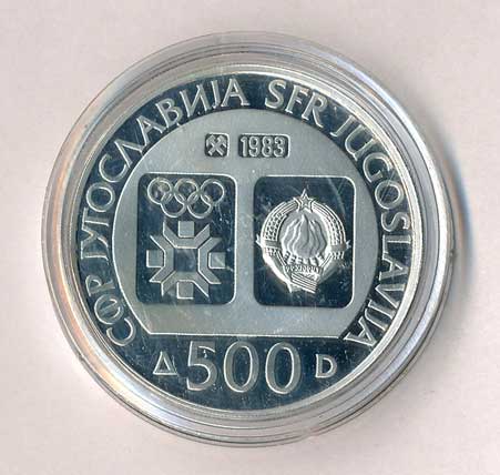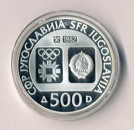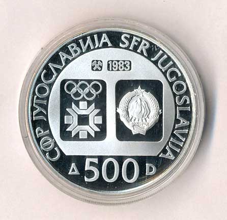 858. 500 Dinara 1983, Zimní olympijské hry v Sarajevu, sjezdové lyžování PROOF 620,- 620,-