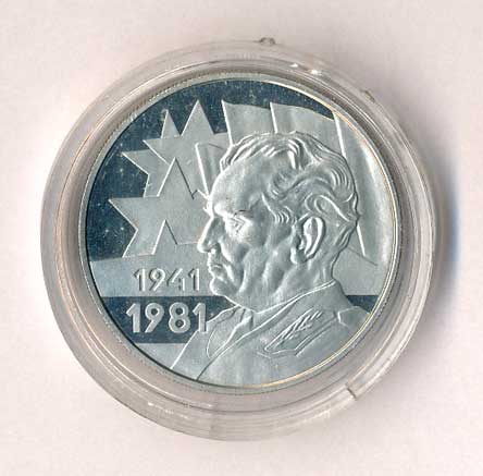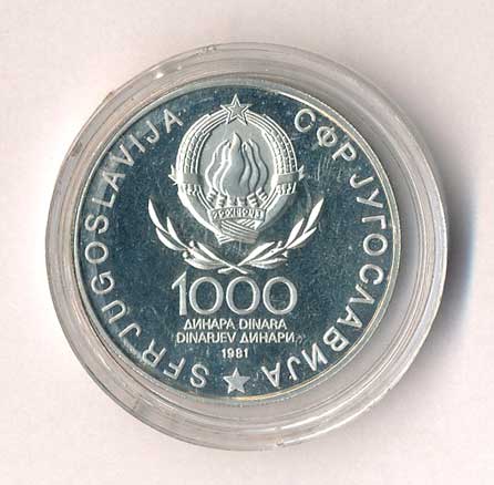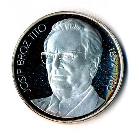 862. 1000 Dinara 1980, pamětní mince k úmrtí Josefa Tita, Ag PROOF 600,- 600,-
