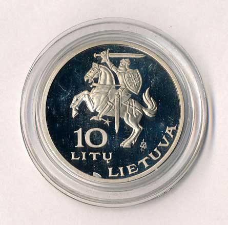 867. 10 Litu 1995, 5.světové sportovní hry v Litvě PROOF 300,- --.-