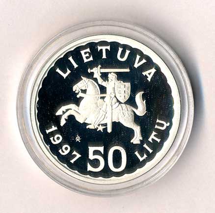868. 50 Litu 1997, 600.výročí usazení Karaimů a Tatarů v Litvě, certifikát, etue PROOF 650,- 650,-