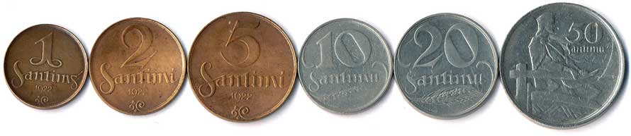 869. 1, 2, 5, 10, 20, 50 Santimu, rok 1922, 6ks 1-1- 200,- --.-
