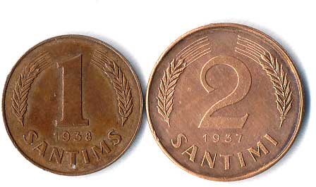 870. 1 Santims 1938, 2 Santimu 1937, 2ks 1-1- 250,- --.-
