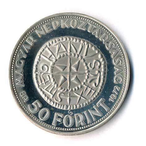 877. 50 Forint 1972, 1000.výročí narození krále svatého Štěpána, Ag PROOF 380,- 380,-