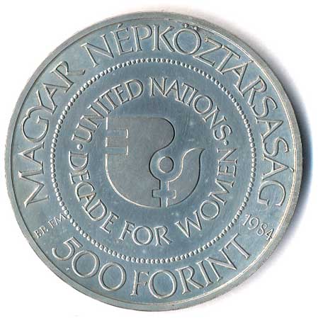 882. 500 Forint 1984, Organizace spojených národů - Desetiletí žen, Ag 0/0 480,- 480,-