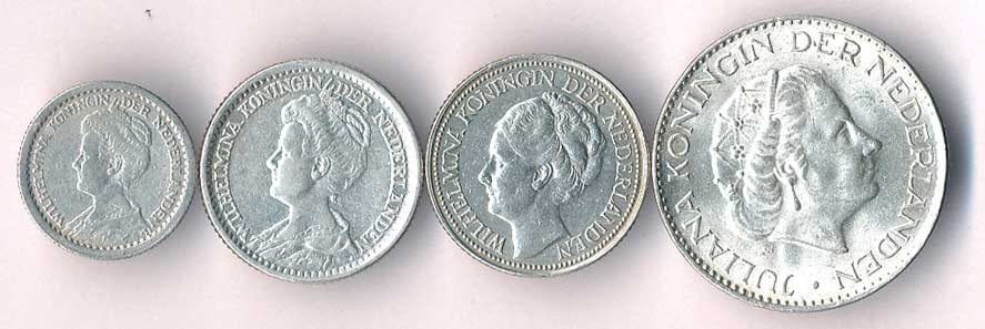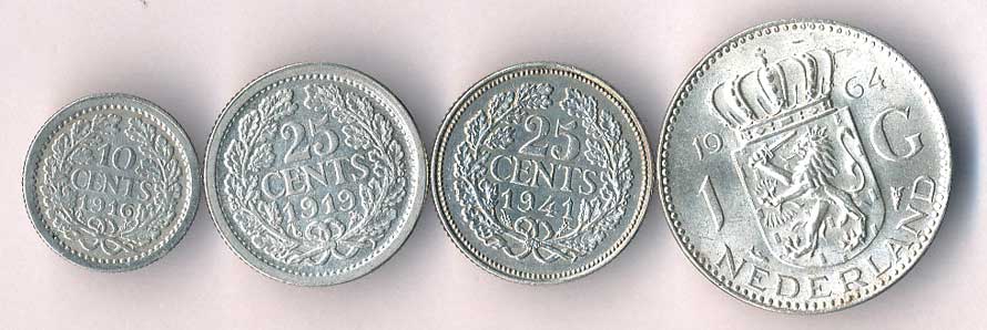 887. 10 Cents 1916, 25 Cents 1919,1941, 1 Gulden 1964, Ag, 4ks 0-1 230,- 230,-