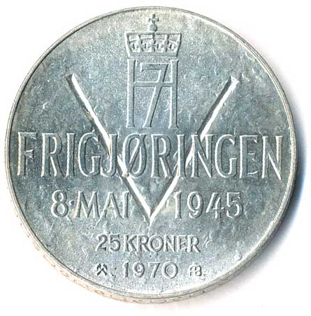 888. 25 Kroner 1970, 25.výročí osvobození Norska, Ag 0/0 750,- --.-