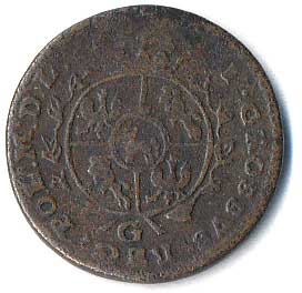 837. Soldino 1601, stylizovaný zámek v Janově, opis: +DVX.GVB.REIP.GEN /8