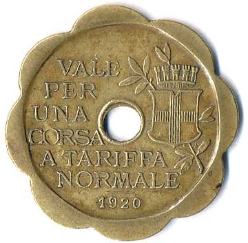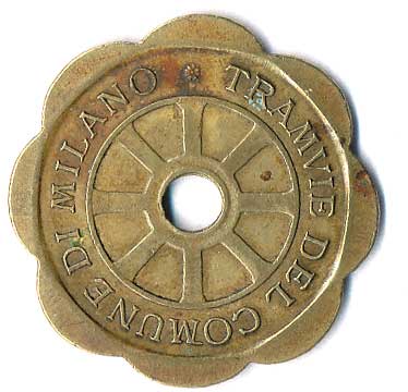 | 1115. | Městské tramvaje Miláno 1920, žeton na jízdu za celý tarif,