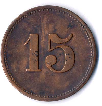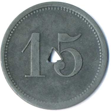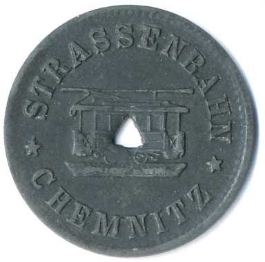 | 1116. | Městské pouliční dráhy Chemnitz, známka na tramvaj, v kruhu 15 /