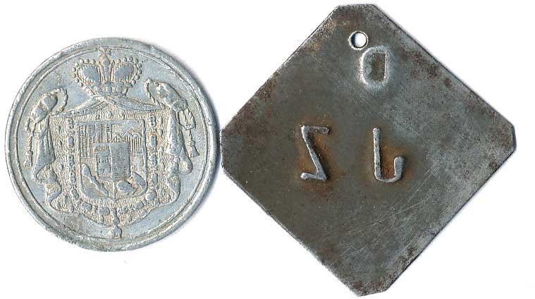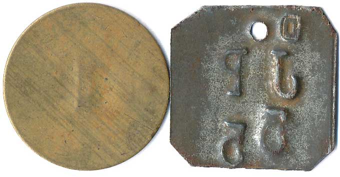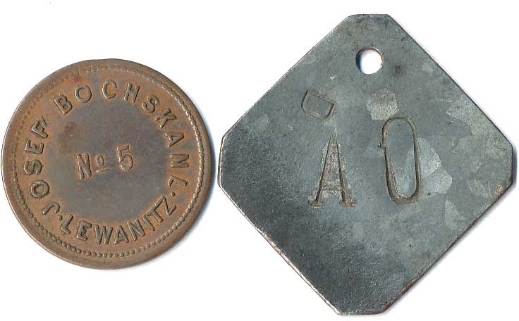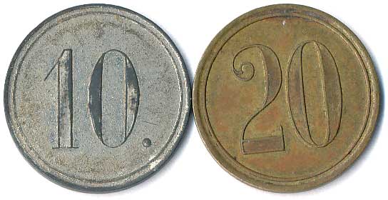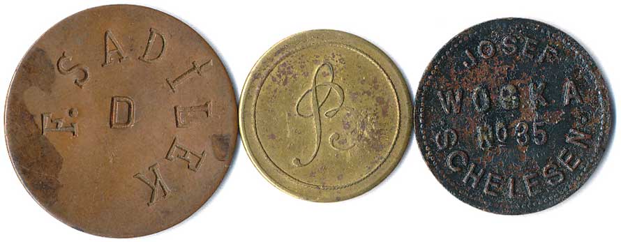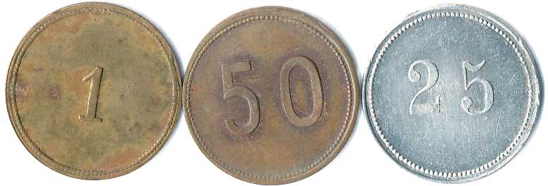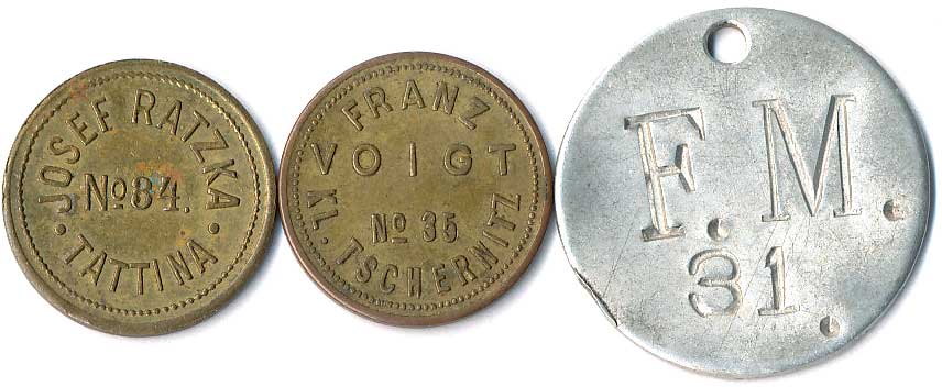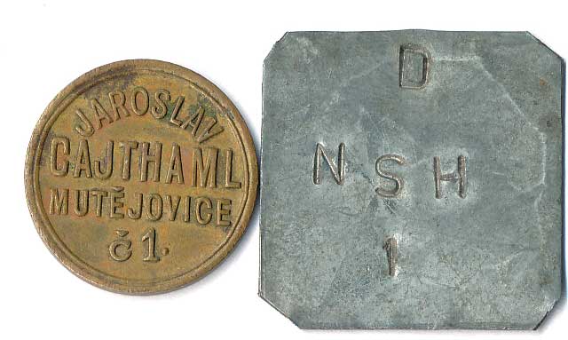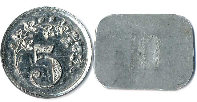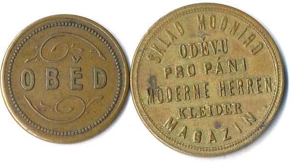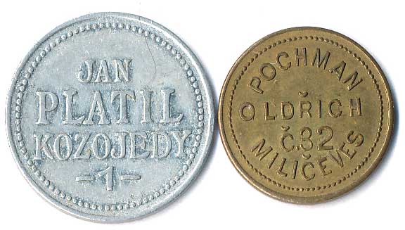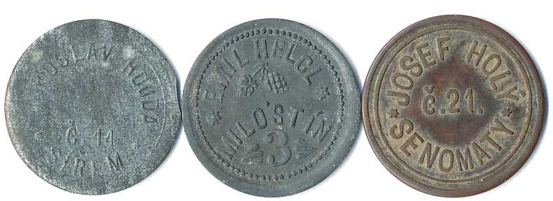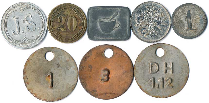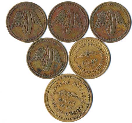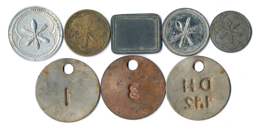 | 1160. | Konvolut jídelních známek, neurčeno, různé tvary, kovy a velikost, 5ks