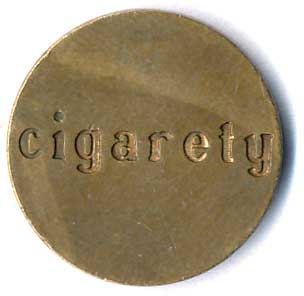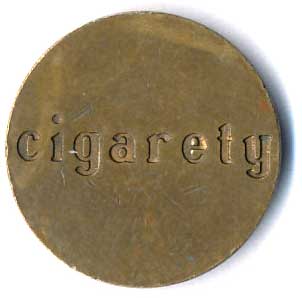 | 1124. | Žeton - neurčeno, nápisy: cigarety / cigarety, ŽK 17,5mm | 1/1 | 50,- | --.- |