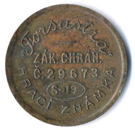 | 1128. | Herní známka Forsastra (Praha) - logo, opis / opis, nápisy, Br25 | 1-1- | 50,- | --.- |