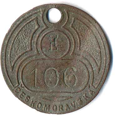 | 1130. | Známka - neurčeno, v orámováních E, 106 a opis Českomoravská, Cu30, prohlá | 2/- | 50,- | --.- |