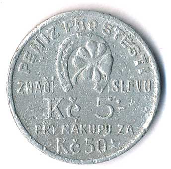 podkova, čtyřlístek, nápisy, opis, slevová známka na 5 Kč, Al 26 |