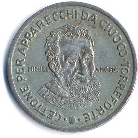 | 1132. | Město Matera, žeton do herních automatů - portrét Michelangela Buonarrotiho,