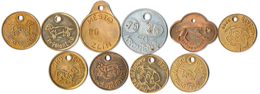 | 1142. | Konvolut psích známek, neurčeno, různá města, tvary, kovy a velikost, 10ks | 1-1- | 50,- | 110,- |