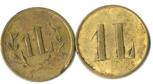 hodnotový žeton, L re. 1 / opisy, nápis, BK26 |