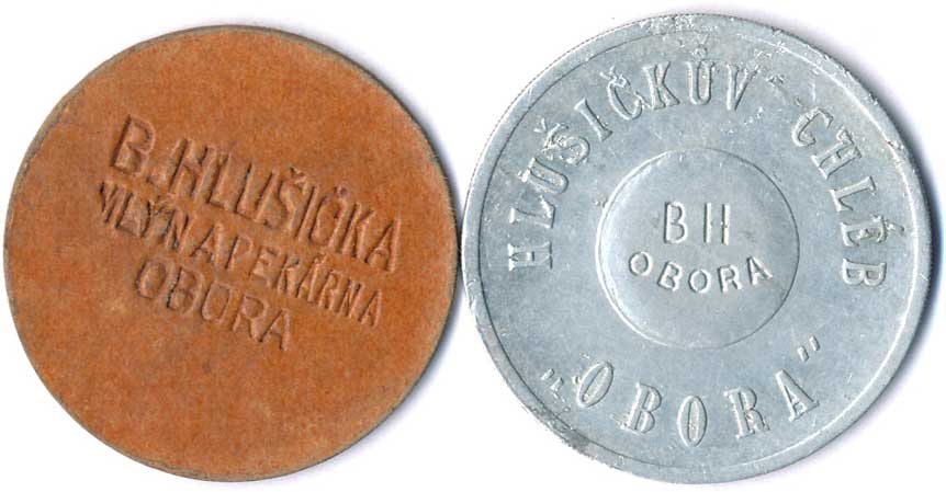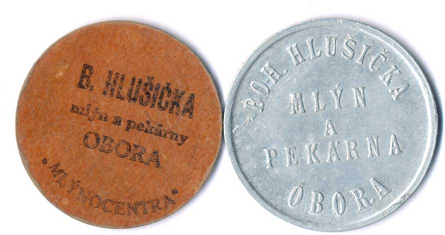 | 1161. | Boh.Hlušička, mlýn a pekárna Obora - opisy / nápisy, papír 29 a Al 30, 2ks | 1-1- | 100,- | 100,- |