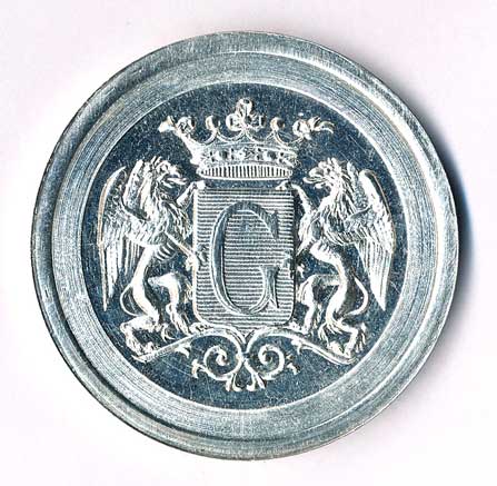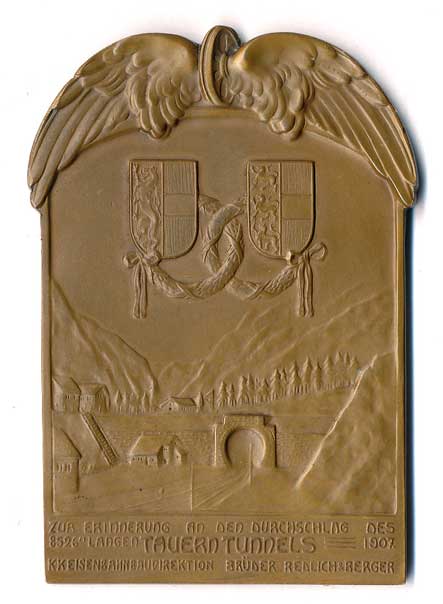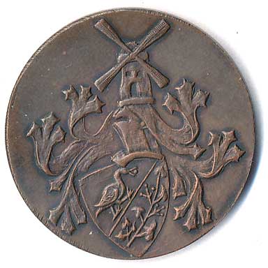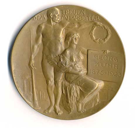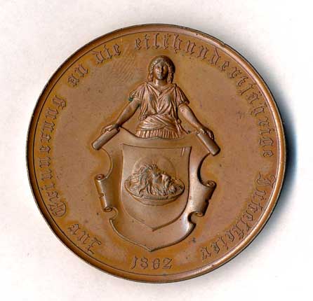 datace, něm.opis / erb s hlavou, za ním postava, opis, Sign., G.LOOS K Fischer,