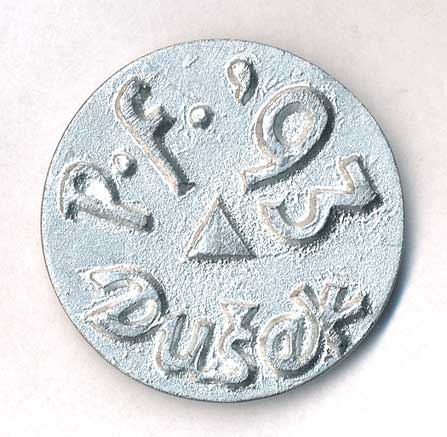 datace, Hradčany, opis / nádoba uprostřed plamenů, opis, Br50