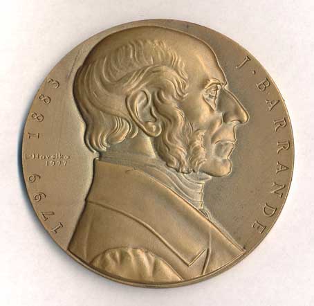 1506. Národní muzeum - paleontolog Joachim Barrande 1978 - poprsí zprava, datace, opis /