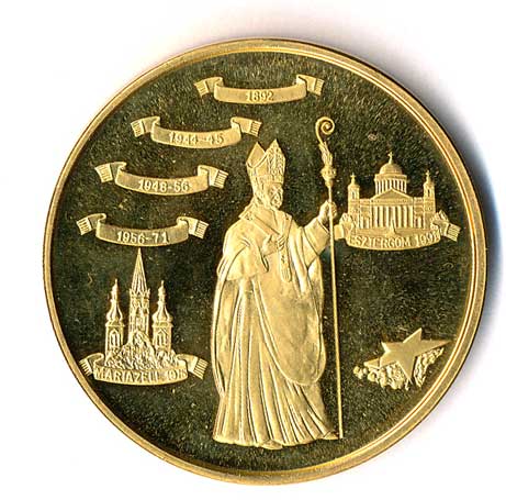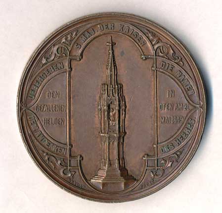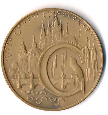 1519. Karel IV. - upomínková medaile - poprsí císaře Karla, v pozadí gotický chrám /