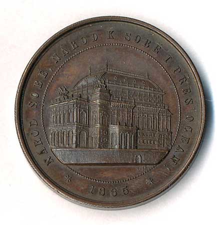 1516. Bratřím Čechům americkým k milé upomínce 1885-Národní Divadlo, opis / orel
