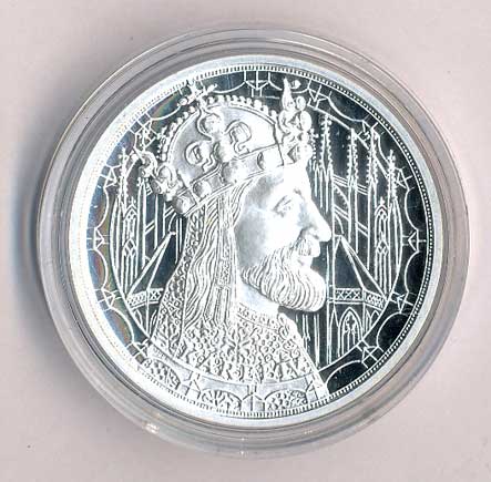 1518. Karel IV. - upomínková medaile - poprsí císaře Karla, v pozadí gotický chrám /