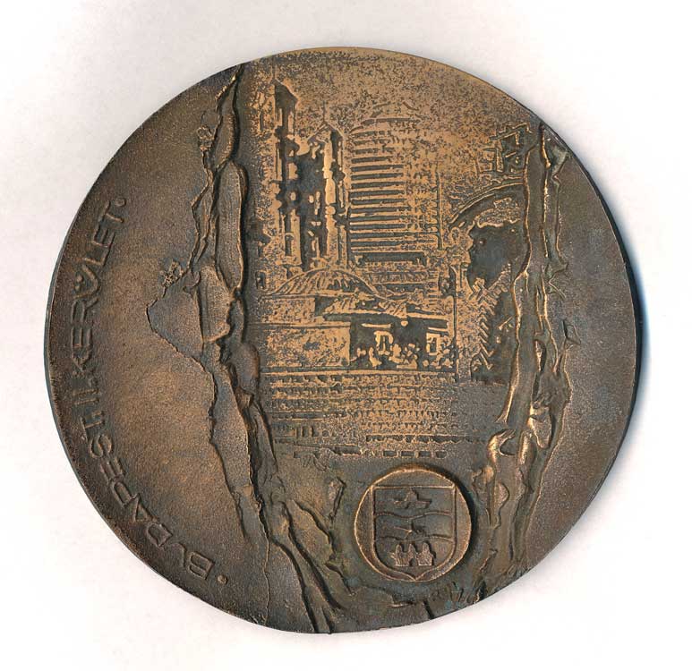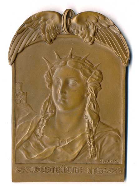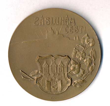 domy, zbraně, opis, sign., Br60, patina, (Kolářský Z.)